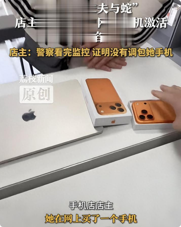 12月30日中午12点,一名女子带着她在网上购买的“苹果17”到当地一家苹果店,请求店主帮忙激活。店主一边用自己的手机录视频留证,一边接过女子递来的手机查看。